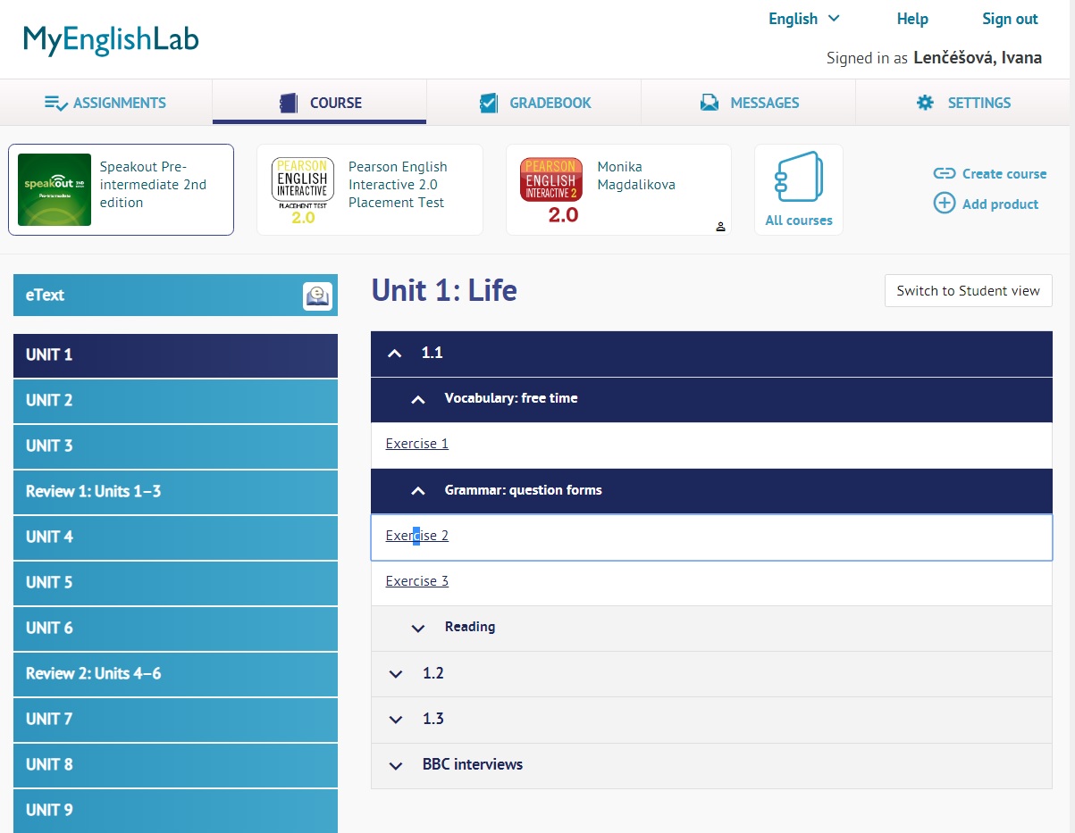 1. Online učebnica MyEnglishLab - SpeakOut 2. Online kurz Englishlink